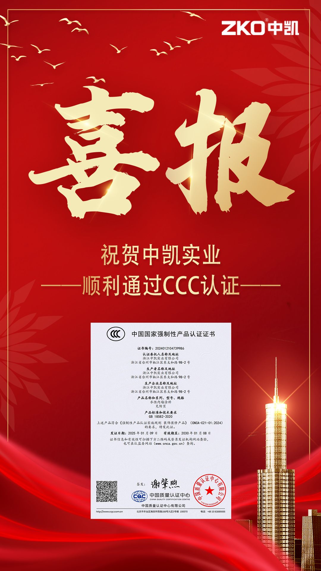 公司成立于1995年,占地面積10000㎡,建筑面積9000㎡,擁有工程師,技術員等職工120人。公司擁有精良的生產(chǎn)設備,完整的管理體系和先進的檢測設備,經(jīng)過多年的市場調(diào)研和產(chǎn)品開發(fā),薈萃了許多科研精英,解決了以往涂料中存在的一些長期沒有獲得解決的缺陷,成為建筑涂料領域的佼佼者,并成為國內(nèi)具有一定規(guī)模和信譽的涂料生產(chǎn)企業(yè)。主要產(chǎn)品“中凱”牌高、中檔內(nèi)外墻厚質十大系列近百個品種的建筑涂料,建筑水性反射隔熱保溫涂料和建筑外墻外保溫隔熱防火材料三個體系。